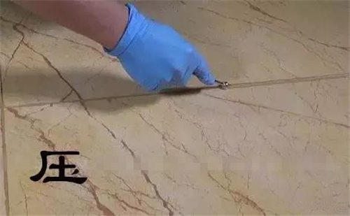 3、填 填便是填充美縫劑了,我們用填的字眼,而不用打,是特別強調美縫劑填充量和美縫劑的打膠均勻。一般的填膠深度要確保達到3毫米,從而保證用膠量充足,后期的粘接密封強度和使用壽命有很好的保障。