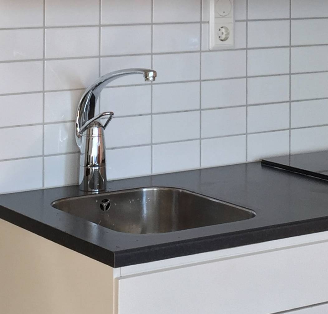 齊平式臺下安裝,也屬于臺下安裝的類型,不同的是臺面厚度幾乎被弱化,常見于層壓式臺面。因為層壓式臺面國外使用較多(國內已知有宜家可選),不太常見。加工難度較臺平式低些,利用層壓板結構優勢,僅讓飾面層覆蓋水槽,邊緣一般為打磨圓角,填充鑄模樹脂類膠封閉達到一定的強度和高密封性。因為遮住這臺面截面,視覺上會輕盈美觀不少。層壓板在使用上沒有問題,且花色非常豐富,耐高溫、耐水、耐刮擦、耐酸,同樣希望國內更多廠商引進。在斯德哥爾摩的酒店里用的就是,這個酒店運營數年,臺面邊緣沒有起鼓變形,鍋具餐具倒是有些舊了。