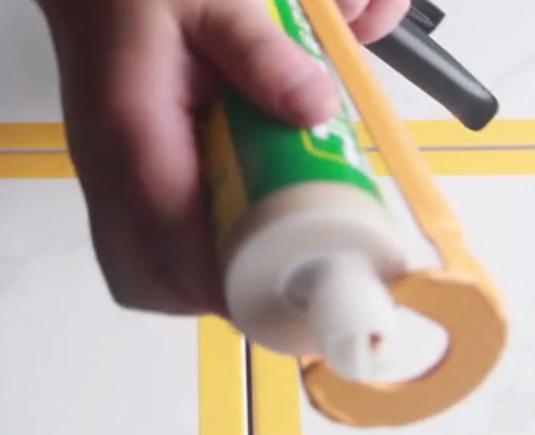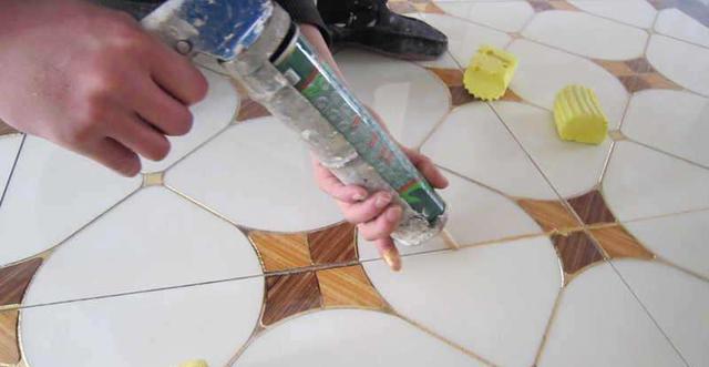正常使用液壓雙管膠槍把美縫劑打入瓷磚縫隙中,40cm左右吧,然后一手按住塑料嘴口,一手按一下膠槍后面的擋板,小心美縫劑溢出。