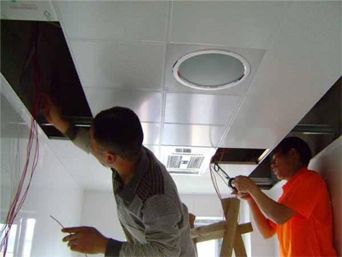 浴室吊頂工程做完之后,就要開始做通風。通風管差不多有1.5米左右,我們要把浴霸的位置因素考慮進去,通風孔距離控制要在1.3米內。