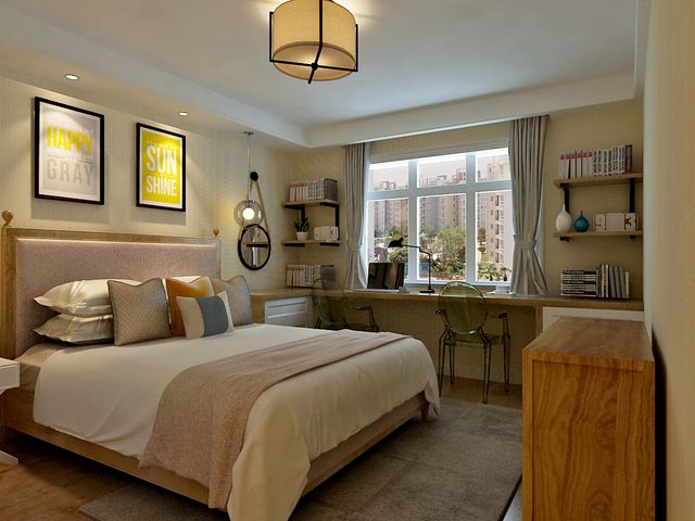 臥室燈具要以柔和、裝飾性較強的燈具為主,可以使用幾種燈混合使用。用以照明的吊燈,凸顯氛圍,又充滿個性的落地燈或臺燈,用以營造一種溫馨典雅的氣氛。