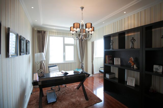 書房照明要以明亮和柔和為原則,因此白熾燈泡較為合適。寫字臺的臺燈要能適應工作的需要,可以選擇帶反射罩、下部開口的直射臺燈。