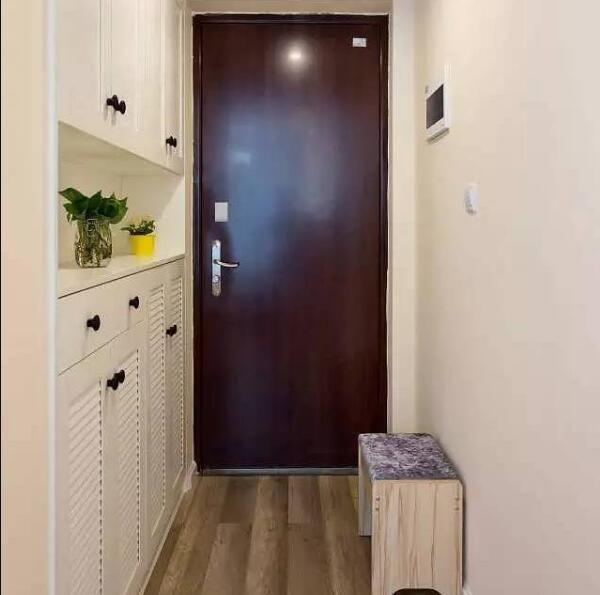 右邊靠墻配上木質板凳,充當了換鞋凳,更方便也更人性化的設計。