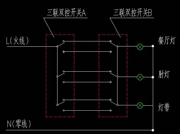 至于三聯雙控開關怎么接,它的原理和前面兩個是類似的,大家可以根據三聯雙控開關接線圖進行連接。