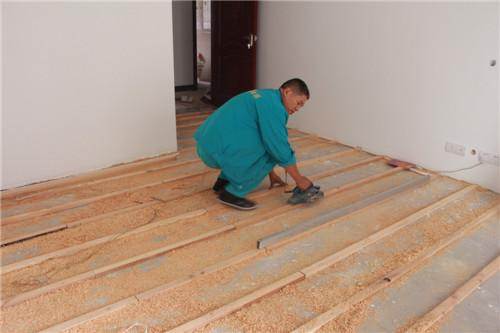 在鋪設實木地板的時候,除了需要水泥地面找平之外,還需要打龍骨架,然后預埋好殺蟲劑,再計算好使用材料,預留一定的伸縮縫。