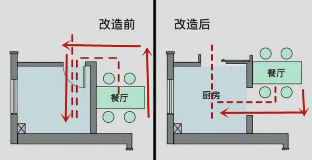 例如:本來必須從餐廳繞行到客廳,再能進門入廚房。
