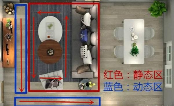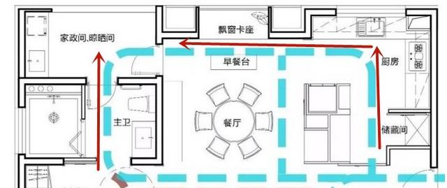 具體講,就是通過合理安排家具、開門洞等,來形成區域間的環形動線。