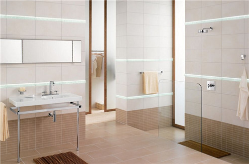 2、 衛(wèi)生間內(nèi)會防止抽風(fēng)機、安裝吊頂?shù)?,所以高度要特別注意,其次是墻磚與地磚的尺寸要互相對應(yīng),不能有太大的差異,最后根據(jù)高度、尺寸與整體效果來確定鋪貼方法,如果統(tǒng)一墻面瓷磚不同,大尺寸瓷磚從下往上貼,小尺寸從上往下貼。