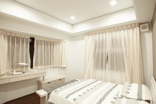 1、在飄窗里面安裝吊頂滑道優點:安裝方便,遮光性好缺點:只能安裝半長窗簾,窗簾的裝飾效果無法充分體現。
