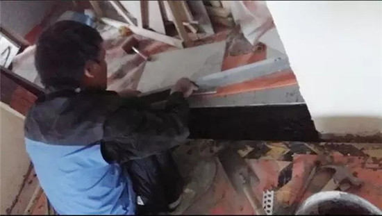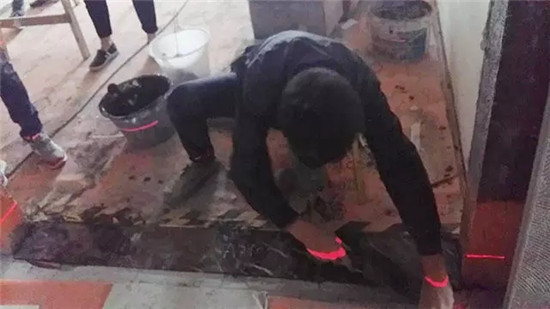 如果門檻石沒鋪貼平整的話,那就要撬開重新做。師傅還介紹說,門檻石兩邊要留有一定的縫隙,用來勾縫美縫劑用的,這樣,就能保證廚房水不滲漏到客廳了。