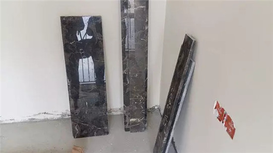 這是準備鋪貼的門檻石,中間那個就是用來鋪貼廚房的。因為廚房是做推拉門的,門檻石也比較長。