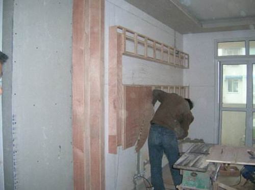 在制作電視背景墻時(shí),應(yīng)先用把木龍骨打好,檢查確認(rèn)牢固后,才能在其上架石膏板,兩塊石膏板之間必須留0.5到0.8cm的縫隙,否則將來(lái)容易出現(xiàn)膨脹拱起現(xiàn)象。