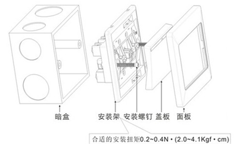 將開關插座的底盒打開,在面板上兩側插入螺絲釘,使用工具擰緊。再將開關插座外殼壓緊,將背面的卡扣按照相應的位置,進行依次安裝好。