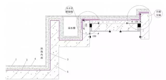 正所謂“材料是基礎,施工是關鍵”,明確了泳池的選材,下一步還要做好施工處理,尤其是管根、進出水口處、陰陽角等細部節點部位,要重點加強。