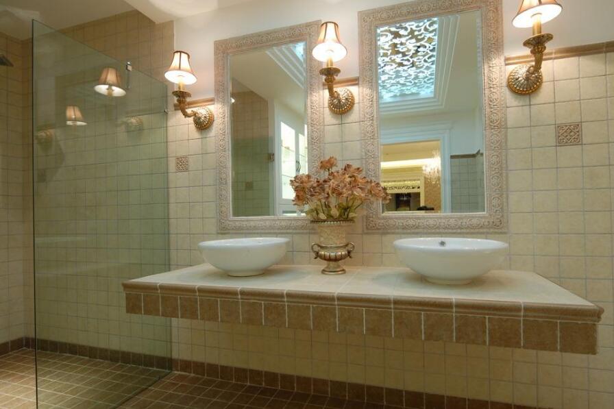 3、池邊應(yīng)稍高于臺面:洗手盆的池邊須稍高于臺面,但與臺面相接處一定要平滑,目的在于將濺到臺面上的水擦回池子里去時不受阻礙,同時便于臺面的清洗。臺面本身一定要選用表面光滑的材料,邊緣及兩角必須圓滑,以免磕碰。洗手盆本身的光潔度也非常重要,光潔度高的池面使水里的雜物不易附著表面,相對來說減少了需要擦洗的次數(shù)。