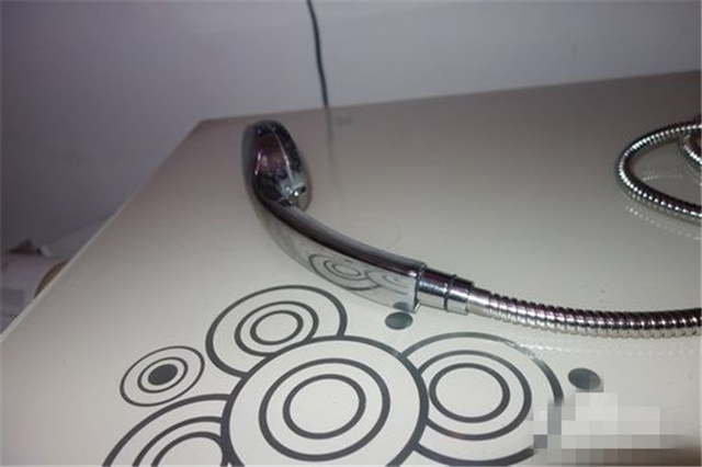 第一步是把淋浴頭和管子連接起來,在連接的時候記得要把橡膠墊,放在連接處,用扳手擰緊。(不放橡膠墊容易漏水,所以一定要放上橡膠墊)完成效果如下圖所示。
