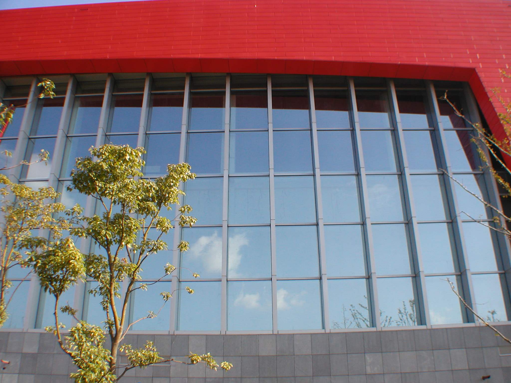 1、玻璃粘貼在兩豎邊有安裝溝槽的玻璃框上,將玻璃框豎邊用固定片固定在鋁合金框格體系的豎桿上;而玻璃上下兩橫邊固定在鋁合金框格體槽梁的鑲嵌槽中。玻璃與玻璃框豎邊的粘接是在工廠內專用車間加工注膠完成的,材料表面清潔有保證,粘接質量好。玻璃框是在結構膠完全固化后,才運往現場安裝,粘接質量有保證。