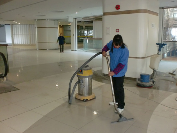 8、地面的清洗:其他所有保潔工作做完以后,就是地面的清洗了,地面也要分材質,是木地板的、還是瓷磚的、或是石材的,當分清后就選擇專用清潔劑稀釋后,開始清洗。地面上的膠漬可用刀片清除,頑固的可用去膠劑處理;最后一道工序做完后,應由領班全面檢查一遍后,確認無遺留后撤離現場。