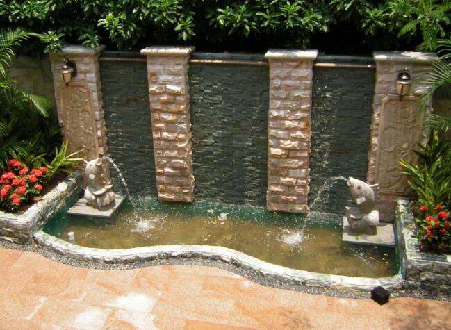 最普通常見的一種水幕墻就是在公園我們常常見到的那種水幕墻,這種水幕墻可以給人一種像瀑布的感覺,會給人一種小壯觀的感覺。