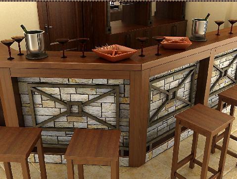 吧臺與餐桌結合,在必要時將吧臺的餐桌部分展出或拉出用于就餐。
