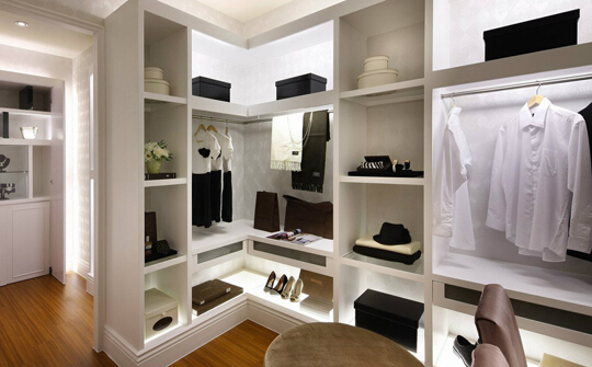 燈光設(shè)計:對于獨立的衣帽間而言,設(shè)計時,要合理安排燈光、色調(diào)等元素,使之既融入室內(nèi)整體風(fēng)格,又保持自己獨特的情調(diào)。在燈光設(shè)計方面,最好設(shè)置接近自然光的光源,使衣服的顏色最接近正常,方便主人選擇。