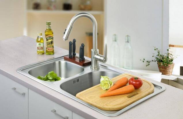 廚房水槽按款式分,可分為單槽、雙槽、三槽和子母槽幾類。廚房空間小的家庭可以選擇單槽,廚房空間大的家庭可以選擇雙槽、三槽或子母槽。