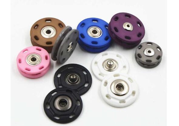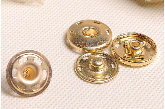 按扣也被稱為暗扣、四合扣、啪紐等。因為地區的不同所以叫法也不盡相同,不過指的都是一種東西。按扣是由部件以及四合扣組合而成的一種扣子,主要是憑借S型彈簧到一起結合。按扣中的A件被稱作母扣,其邊上可刻各種花紋圖案,母扣的中間有個孔,孔的上邊有兩根平行對稱的彈簧,主要就是依靠其和公扣結合固定衣物;B件則被稱為公扣,其中間部分是突出一個圓柱體,將圓柱按入母扣的孔內后彈簧會產生開合力,將柱體夾緊,以此來達到固定衣物的作用。