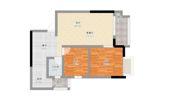 這是一套69平米2居室戶型圖,儲藏室和廚房的部分空間是附送部分,在視覺上增強了空間擴容感;
