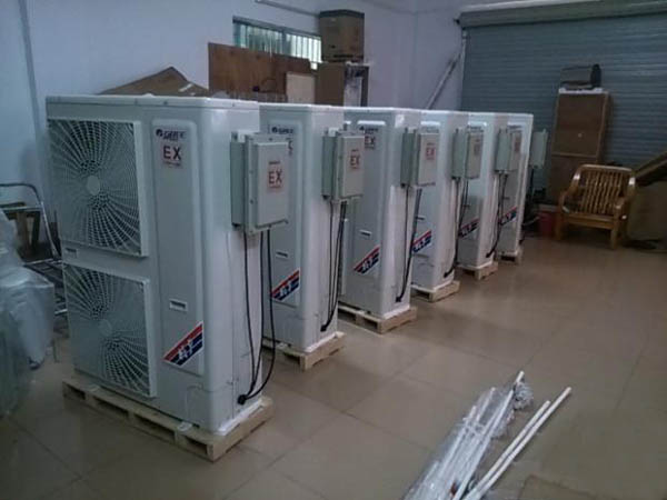 產品具有制冷制熱和自動除霜功能,壓縮機、風機等都經過特殊的防爆處理,防爆類型為整機防爆。防爆產品可應用于石油、化工、醫藥、科研、軍事、危險倉庫等易燃易爆的混合性氣體環境中使用。在結構上采用隔爆型、本安型、澆封型等復合防爆技術,控制端全由本安型控制,不產生任何電火花,使用方便安全,采用高效多翅式換熱器,冷煤通過時與空氣的接觸更充分,能大幅度的提高空調的制冷制熱效果,手動控制和遙控兩種。防爆空調未取得生產許可證不得生產及銷售。