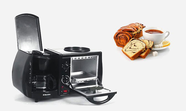 中式早餐機(jī)左側(cè)為烤箱,右側(cè)為咖啡機(jī),頂部有煎盤(pán),烤面包、煮牛奶、煎雞蛋三樣工作同時(shí)進(jìn)行也可分開(kāi)進(jìn)行。國(guó)產(chǎn)小家電產(chǎn)品,雖然功能較為全面,但是在能耗消耗方面也會(huì)有所體現(xiàn)。