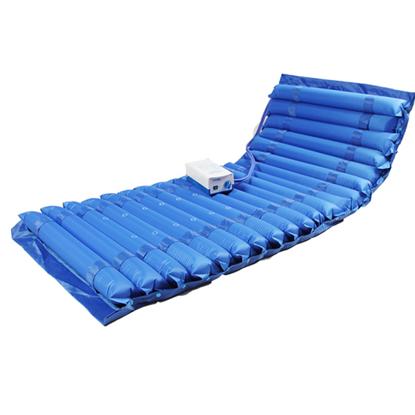 防褥瘡床墊通常是采用PVC材質的布或膜,經過熱合嚴密過程,與充氣泵、進氣嘴、系繩孔、導氣管、卡扣等部件組裝而成,具有柔軟舒適、防治褥瘡等功能特點。防褥瘡床墊根據結構有波動型、波動噴氣帶便孔型、波動噴氣型之分。
