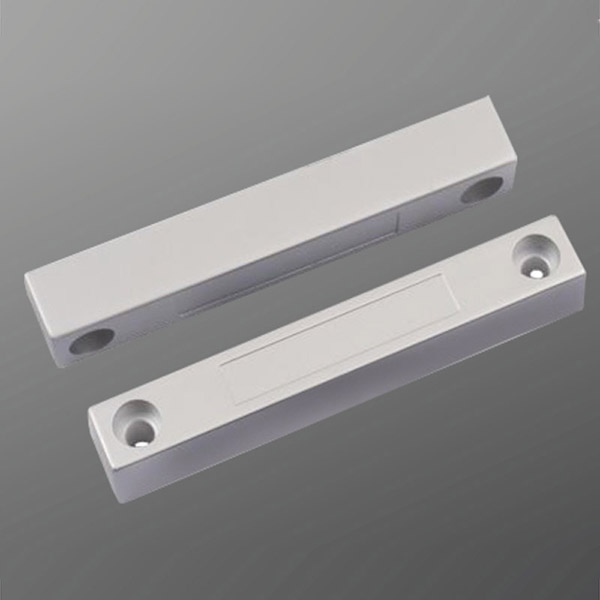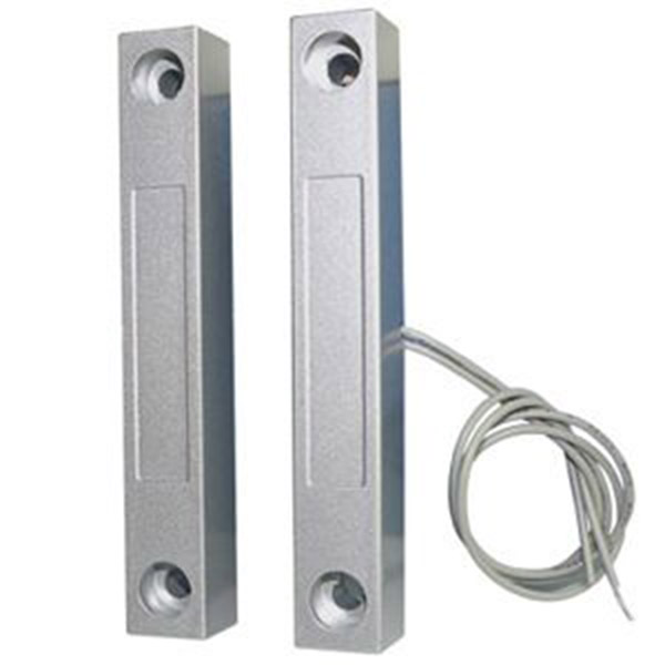 門(mén)磁開(kāi)關(guān)主要由開(kāi)關(guān)和磁鐵兩部分組成,開(kāi)關(guān)部分由磁簧開(kāi)關(guān)經(jīng)引線連接.定型封裝而成;磁鐵部分由對(duì)應(yīng)的磁場(chǎng)強(qiáng)度的磁鐵封裝于塑膠或合金殼體內(nèi).當(dāng)兩者分開(kāi)或接近至一定距離后,引起開(kāi)關(guān)的開(kāi)斷從而感應(yīng)物體位置的變化。