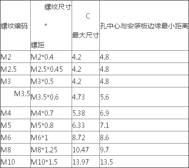 3、適用于各種厚度的板材,最小厚度0.8mm,使用時必須根據板材厚度和螺母規格,才能確定A尺寸對應的尾部號Z,用戶根據板材厚度依據表中尾部號選樣訂貨;