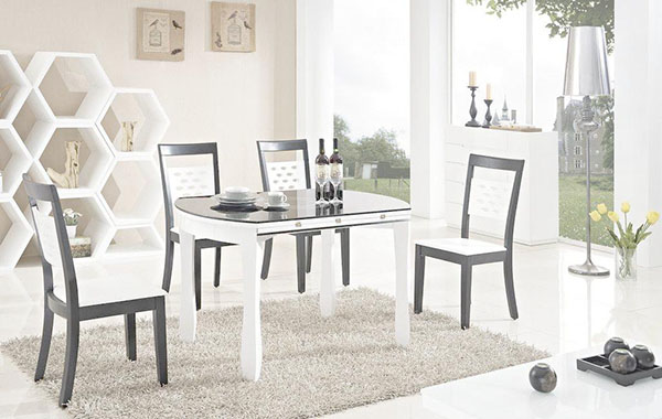 3、鋼化玻璃餐桌能更好地與其他各式家具形成良好的搭配組合,簡潔明了的線條和通透的視覺效果不會是它變得突兀。