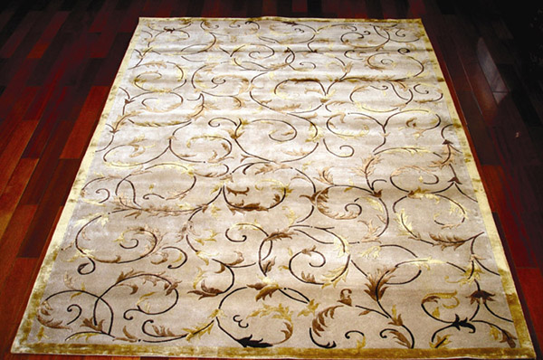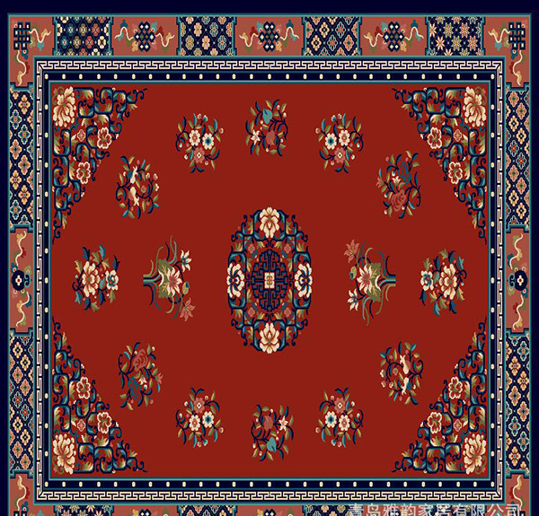 1、T10011藏毯龍禧地毯,丙綸和羊毛不同材質,花朵樹枝線條交織圖案,色彩艷麗。
