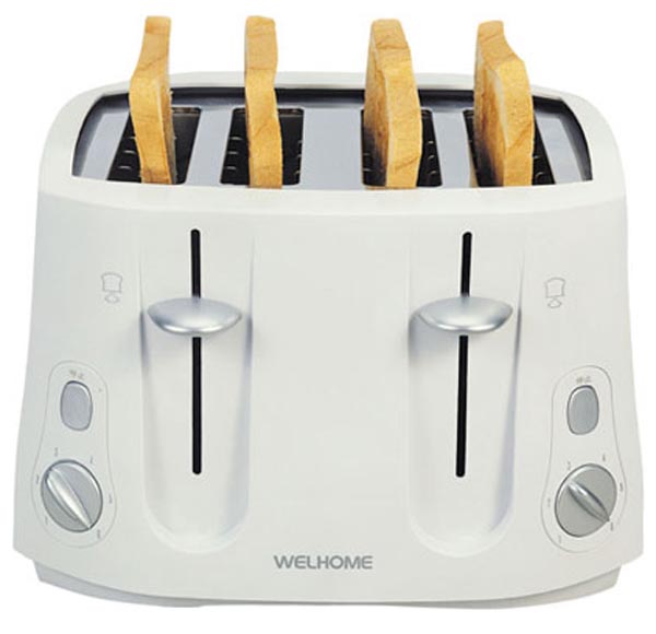 烤面包機,即多士爐,英文名Toaster,是一種常用的廚房用品,主要用來烘烤面包片。一個烤面包機通常包括一個多功能烤箱,隔熱爐面,特別提升裝置等,比較先進的還包含可分離式面包屑底盤。烤面包機屬于加熱電器。其功能是在面包片附近生成足夠的熱量,以便對面包進行烘烤。如果沒有彈出式烤面包機,早餐肯定不會像如今這么豐盛。