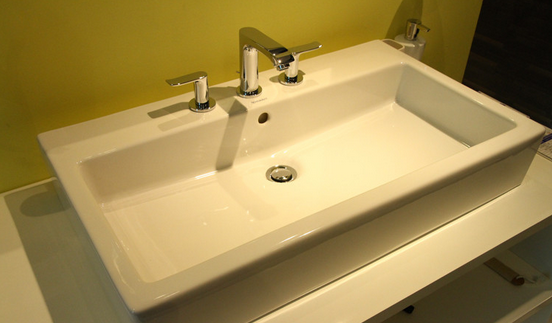 洗臉盆一般開有三種孔,即進水孔、防溢孔和排水孔。為了能將水放滿洗臉盆,必須將排水孔堵起來,排水孔一般都附有專用的塞子,有的塞子可直接拿開或關上,有的則用水龍頭上附帶的拉壓桿控制。根據(jù)洗臉盆上所開進水孔的多少,洗臉盆又有無孔、單孔和三孔之分。無孔的洗臉盆其水龍頭應安裝在臺面上,或安裝在洗臉盆后的墻面上;單孔洗臉盆的冷、熱水管通過一只孔接在單柄水龍頭上,水龍頭底部帶有絲口,用螺母固定在這只孔上;三孔洗臉盆可配單柄冷熱水龍頭或雙柄冷熱水龍頭,冷、熱水管分別通過兩邊所留的孔眼接在水龍頭的兩端,水龍頭也用螺母旋緊與洗臉盆固定。