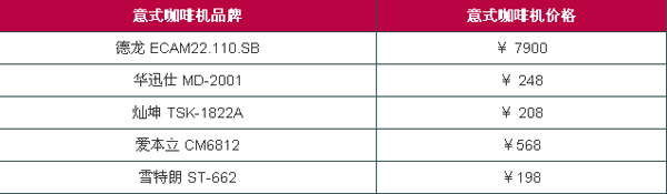 3、價格上:美式咖啡200元左右就相當不錯的質量了。意式咖啡機,價格從700-10多萬不等。