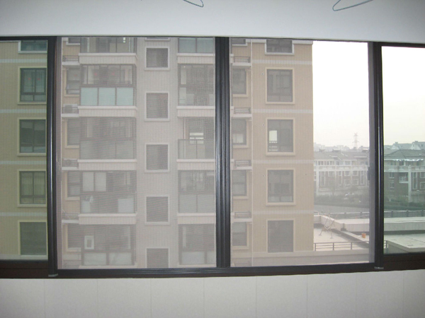 折疊款的組成部分:采用鋁合金的邊框,N形的折疊紗網,由尼龍繩和細鋼絲控制紗網的伸縮。其中紗網又包括:單色紗、彩色紗等折疊款的使用效果:由于折疊款的上下有縫隙,所以抗風性能較差紗網容易跑出軌道。尼龍繩也容易斷裂。紗網沒有一個平面,不容易清洗紗網。