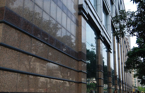 在相同面積的比較下,玻璃幕墻的質量約為粉刷磚墻的1/10~1/12,是大理石、花崗巖飾面濕工法墻的1/15,是混凝土掛板的1/5~1/7。一般建筑,內、外墻的質量約為建筑物總重量的1/4~1/5。采用幕墻可大大的減輕建筑物的重量,從而減少基礎工程費用。