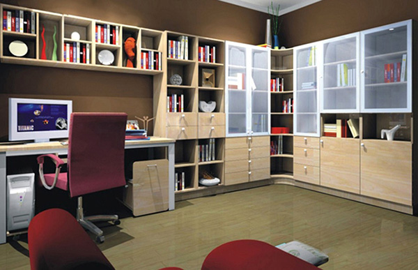 3、業主們在選購書柜前,要了解自己家的書房比較適合哪種形狀的書柜。常見的書柜形狀有:一字形、L形和U形。書房面積比較大的家居可以選擇U形書柜,這樣容易與書房的整體相融合;書房面積大小適中的家庭選擇L形的書柜比較適宜;書房面積較小的家居比較好的就是簡單的一字形書柜。