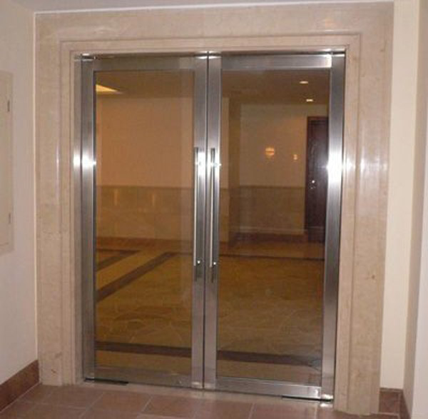 高強度性能:將幾扇厚度一致的玻璃門進行比較,它們分別是防火玻璃門、普通浮法玻璃門、鋼化玻璃門。普通玻璃門在荷載850千克左右的重物時發生碎裂;鋼化玻璃門在荷載2100千克左右的重物時發生碎裂;而防火玻璃門則在荷載4200千克左右的重物時才發生碎裂。由此我們可以清晰地看出防火玻璃門在高強度方面的巨大優勢。