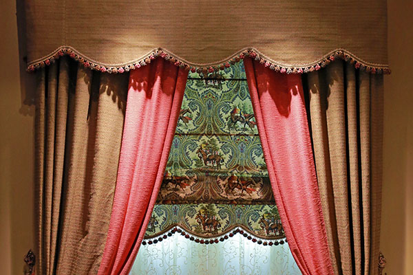 塞納河畔系列的窗簾為雙層布料,還搭配了一款經紗簾,更增添了朦朧輕盈之感。另外,雙層布料的搭配使用可以更好的調節光線,以適應溫度季節的變化。而宏生紡織這款HS-13-3窗簾同樣為雙層布料,外面的一層布料質地較厚,里面又有一層綢緞面料打底,遮光性較強;為了突出窗簾的飄逸感,又增加了一層紗簾,紗簾較為柔軟,光線較為充足的話,就可以單獨使用這層薄紗窗簾。