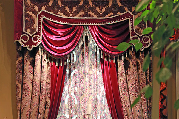 中式窗簾是把中國傳統風格和現代簡潔時尚相結合進行重新演繹。適合追求簡潔大方的家裝。中式窗簾在空間中的使用,不僅反映現代人追求簡單生活的居住要求,更迎合中式家居最求內斂、樸質的設計風格。中式窗簾運用了一些拼接方法和特殊剪裁,凸顯濃郁唐風的圖案。同時運用金色和紅色作為陪襯,華貴而大氣。