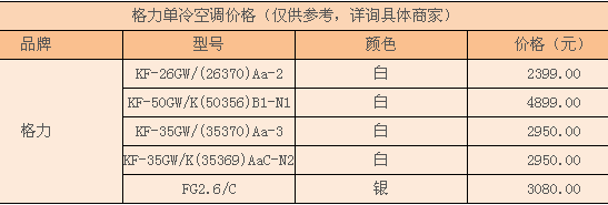格力品牌的單冷空調(diào)品種多樣,價格各異,以下列舉幾款僅供參考: