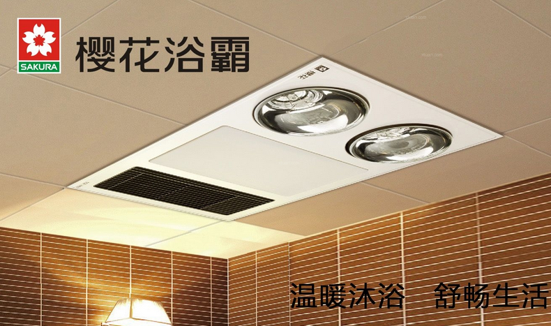 櫻花浴霸線條流暢精致時尚、優雅大方,面板采用經由陽極氧化表面處理鋁合金材質,具有較強的耐高溫性、抗老化性、防過熱、高質感,箱體經過閃銀噴涂,結合黑色燈圈及散銀出風柵,彰顯高檔品味。吊頂式浴霸采用純平設計,能與集成吊頂完美結合。浴霸開關為嵌入式機械設計,與整機搭配和諧。