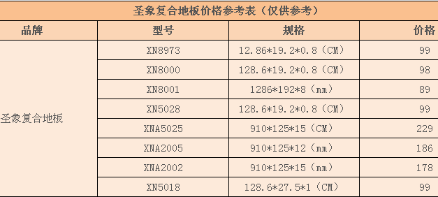 3圣象復合地板價格表