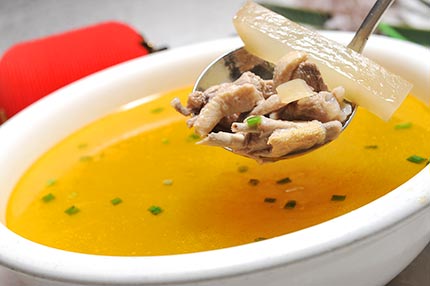 ? ? ??1 公鴨肉性微寒,母雞肉性微溫。入藥以老而白、白而骨烏者為佳。用老而肥大之鴨同海參燉食,具有很大的滋補功效,燉出的鴨汁,善補五臟之陰和虛癆之熱。