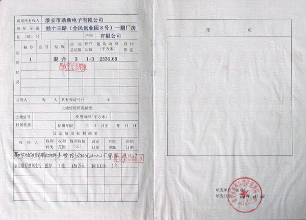 (l)以依法取得房屋所有權的房地產抵押的,登記機關應在原《房屋所有權證》上作他項權利記載,交由抵押人收執,同時向抵押人頒發《房屋他項權證》;