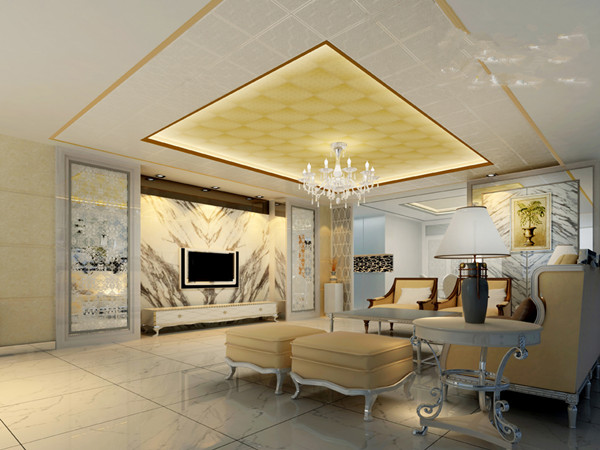 根據樓層標高水平線,用尺豎向量至頂棚設計標高,在頂板上彈在龍骨位置線,并將頂棚的標高水平線彈在墻面上。